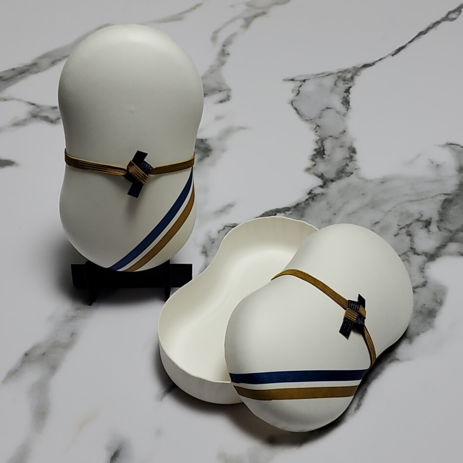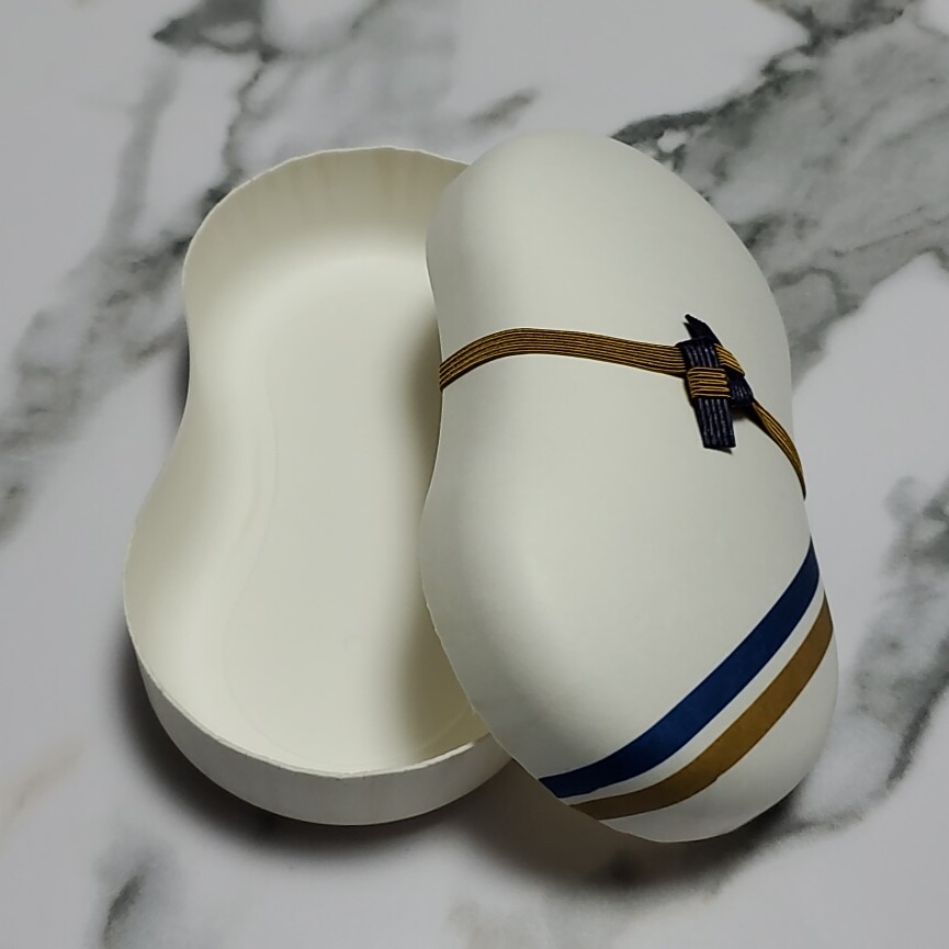 アイパックス イケタニ株式会社様(繭玉容器(飛鳥Ⅱ)) 製品名:繭玉容器Ⅲ サイズ:156×86×51mmH 仕様:特色2色印刷+OPニス 使用用途:食品一次容器他 紙うつわ®の代表的な「繭玉容器Ⅲ」に豪華客船「飛鳥Ⅱ」のボディーカラーラインを印刷し、乗客への食品パッケージとして採用。 お問い合わせはこちら