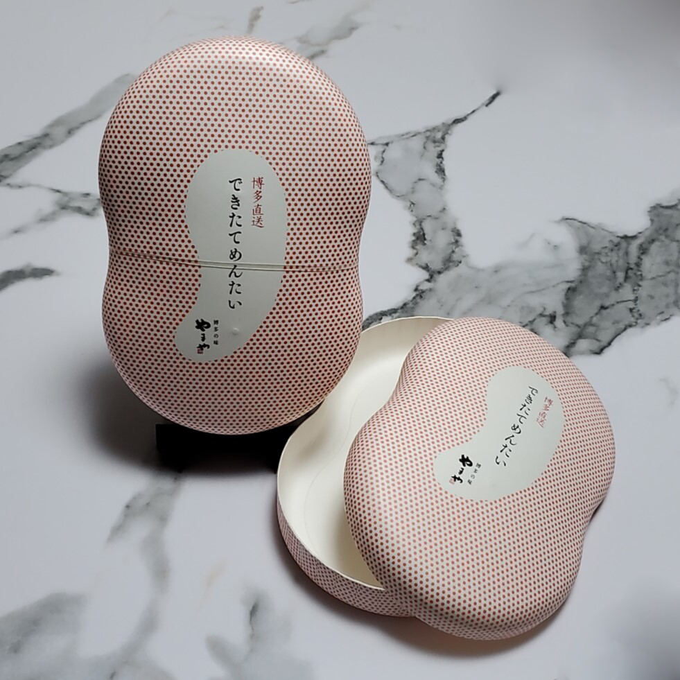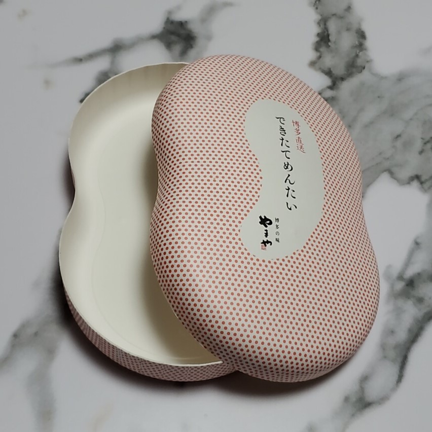 やまやコミュニケーションズ様(できたてめんたい(大)) 製品名:繭玉容器Ⅲ(大) サイズ:206×136×53mmH 仕様:特色2色+黒1色印刷+OPニス 使用用途:食品二次容器(魚卵) 紙うつわ®の「繭玉容器Ⅲ(大)」にピンクのドット柄を施し、めんたいこのイメージを強調、さらに蓋に「できたてめんたい」の商品タグを印刷。 お問い合わせはこちら